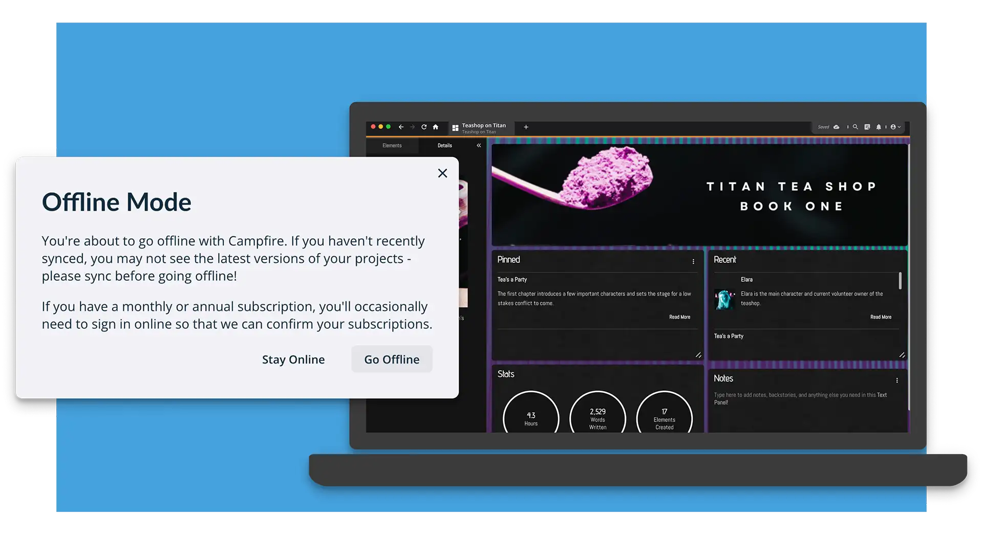 Use Campfire for free or write unlimited with a paid plan. An internet connection is required.