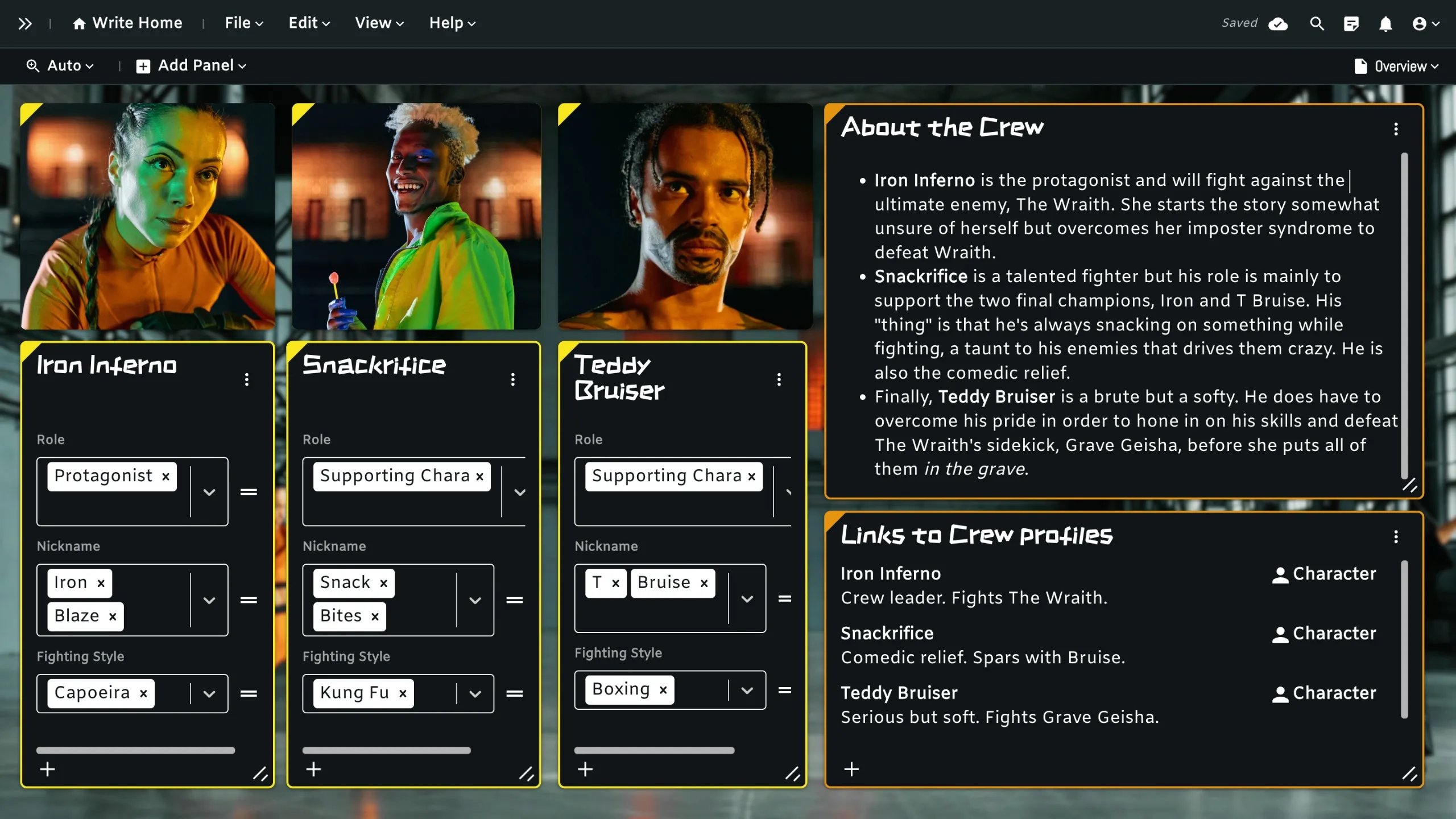 Every interesting character should have an equally interesting backstory. Campfire helps you create that, and then some.