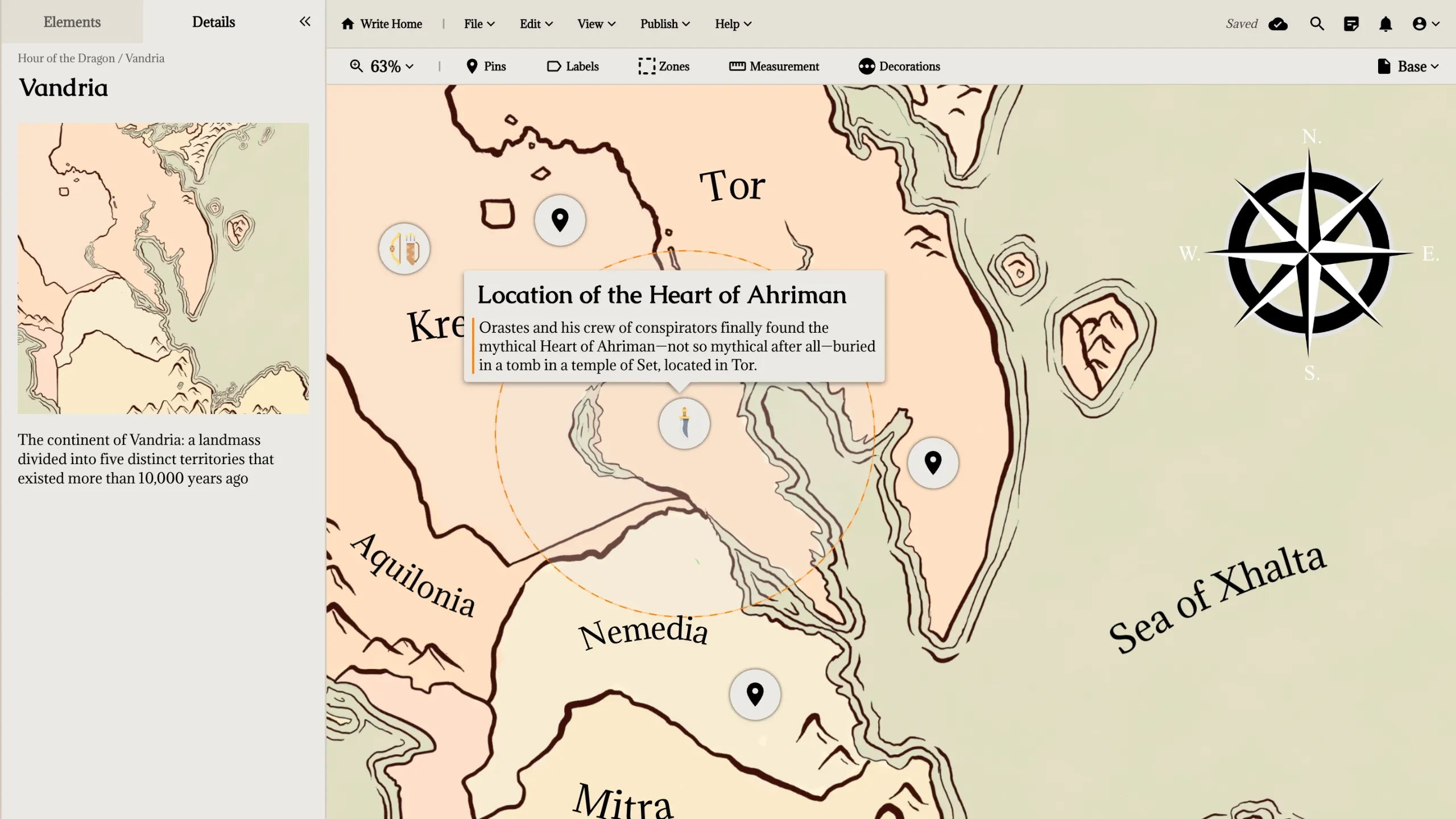 Create immersive maps for every corner of the continent in the Maps Module, from the village inn to entire countries. Leave no path unexplored with custom pins, zones, measuring tools, and more.